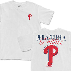 Our MLB Outline collection features the Phillies logo rendered as a minimal outline on the front left, with a full team wordmark on the back.